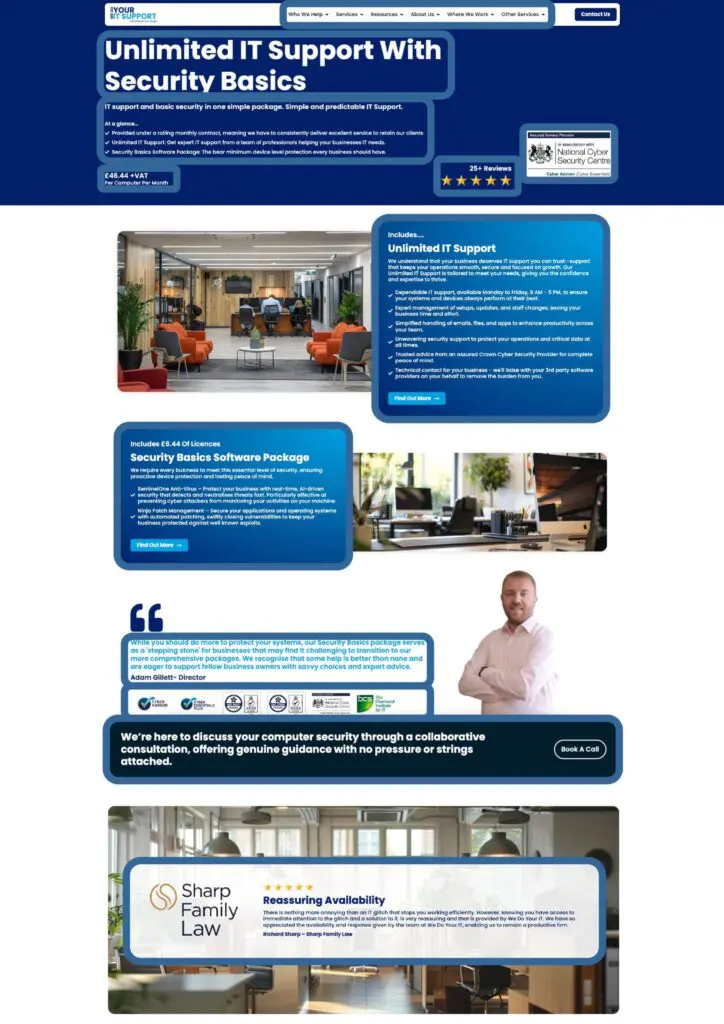 Here is how a ‘C’ sees a website and the elements they will care about. We have highlighted these inside clear boxes to help you understand what kinds of things they will care about.